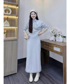 XẢ HÀNG SET 3 MÓN VÁY NỮ CHẤT NỈ PHỐI ÁO SƠ MI LỤA TAY DÀI G76- SAM FREESIZE < 52KG