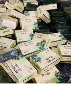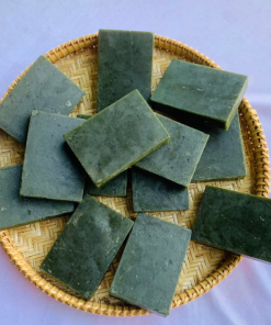 Xà phòng tía tô 100g có mùi hương nhu thơm nhẹ dễ chịu, màu xanh diệp lục đậm đẹp mắt.