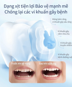 -Dạng xịt tiện lợi, bảo vệ mạnh mẽ: Mảng bám răng, vi khuẩn gây sâu răng, Vi khuẩn gây viêm , Vi khuẩn gây bệnh truyền nhiễm, Vi khuẩn gây bệnh đường ruột