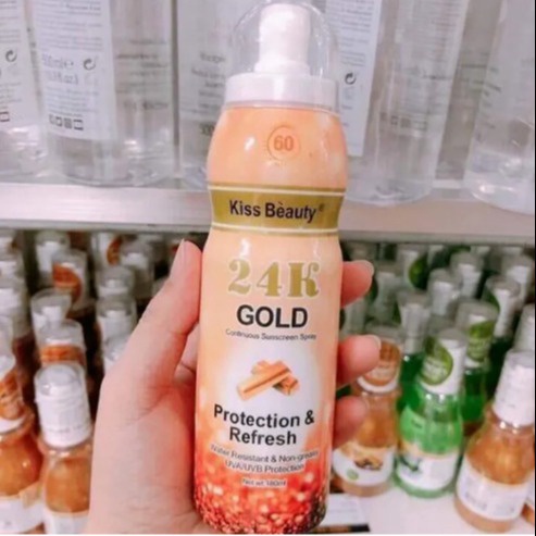 Thông tin sản phẩm: XỊT CHỐNG NẮNG TRẮNG DA TOÀN THÂN 24K KISS BEAUTY 180ML PHÙ HỢP VỚI MỌI LOẠI DA – GDN