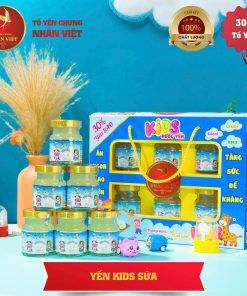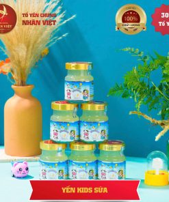 – Yến hũ Kids Sữa non Nhân Việt (30% yến) dành cho trẻ em là một món ăn được chế biến từ 30% tổ yến thô nguyên chất chưng cất cùng đường phèn, sữa non và các loại vitamin khoáng chất cần thiết cho trẻ phát triển như: Canxium, Lysine, Taurine,và Các Vitamin D3, K2, …